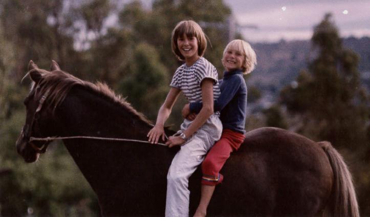 Aged 11, on my pony Koko, with 6 year old brother riding tandem.